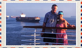 We were all getting quite excited that we are now going to have something more than sea to look at. The plan was that we were to arrive in Suez at around 9.30 pm, drop anchor while we bunker and top up with fuel. In the morning we start our transit of the canal. Just when we thought nothing else could happen, at the end of the show in the princess theatre, Mark our cruise director comes out and announces “I’ve got some news” dead silence fell around the theatre, “A tug has sunk at the mouth of the bitter lake so the authorities want us to start our transit tonight as they are going to close the canal while they remove it.....” The silence was broken with laughter as everyone thought for sure that this was one of those jokes because of all our mishaps.... “People, I’m not joking” Mark said. And with that, Garry and I jumped out of our seats and raced up on deck to check out what was happening.... sure enough the anchor was pulled up and we were slowly making our way to the entrance in our convoy... As nice as it was to see Suez town all lit up at night it did not make it conducive to taking any pictures... But not much you can do..... Our transit was only to the Bitter Lake where we waited till morning when the authorities said we could continue.